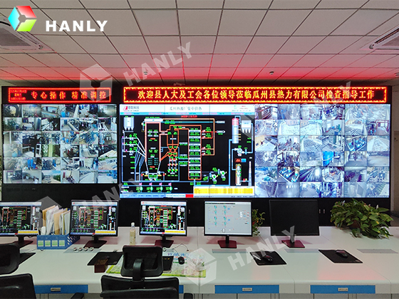甘肃瓜州县某热力公司由之前的55寸3X3液晶拼接屏增加了55寸3X6的拼接屏项目成功应于监控中心,大屏幕具有高亮度、高对比度,高分辨率显示,并配有先进的图像处理器,设备运行情况及供热数据能实时显示,结合故障报警系统,当供热系统出现故障时,能进行自动判断和报警,供热人员可以在最短的时间发现并处理系统出现的异常,避免事故扩大。供暖工程建成后,瓜州县某热力公司的功能得以进一步完善。